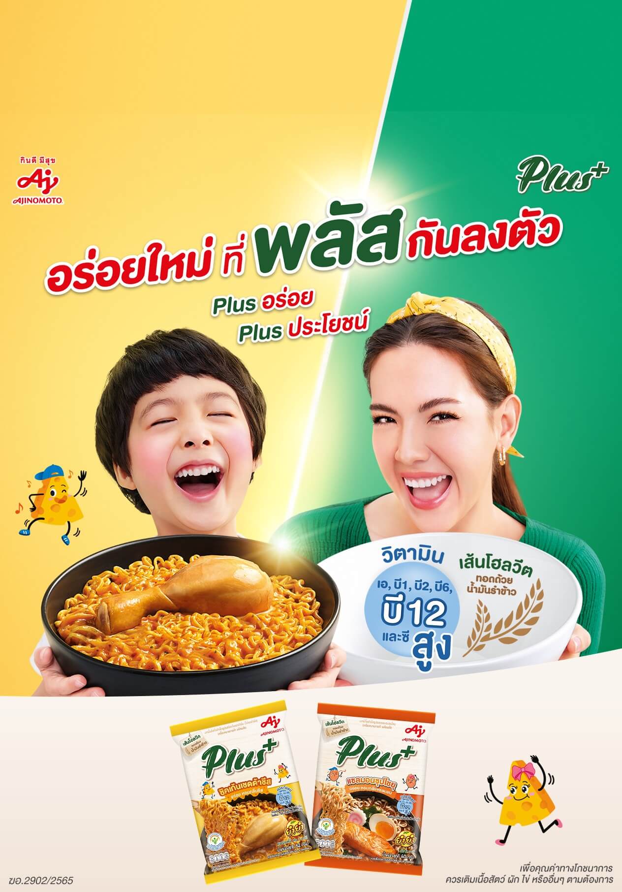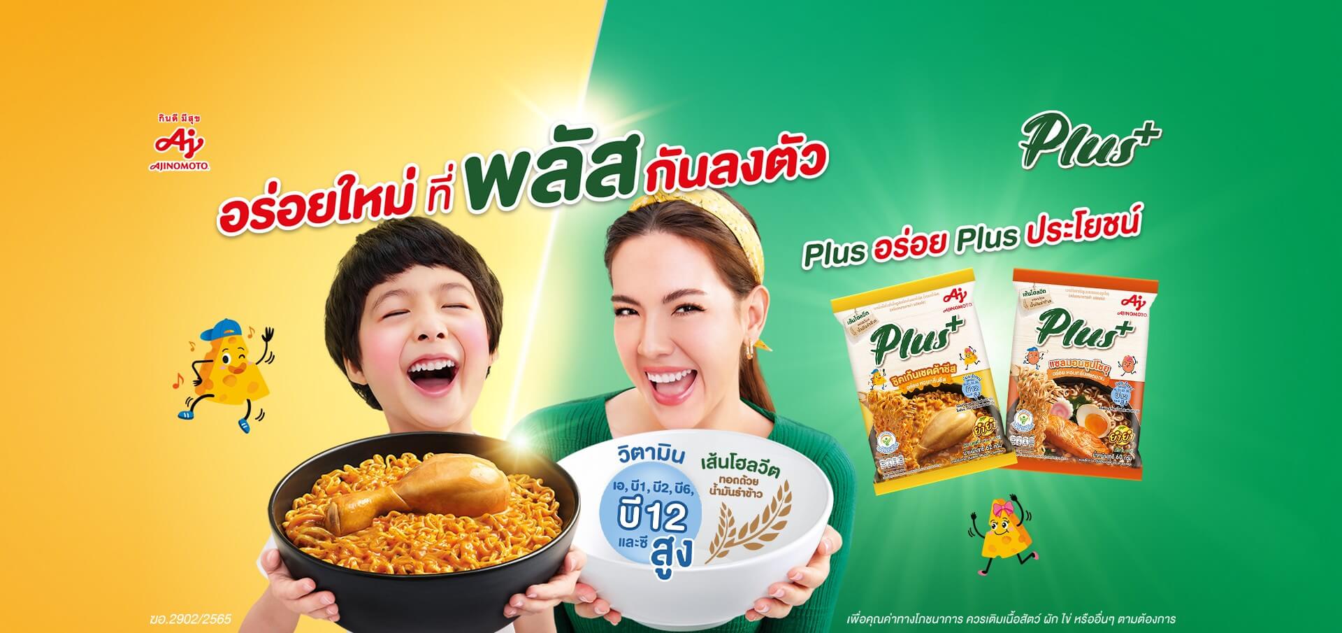 พลัส+ บะหมี่กึ่งสำเร็จรูปเพื่อสุขภาพ “รสแซลมอนซุปโชยุ” รสชาติสไตล์ญี่ปุ่น เอาใจคนรักอาหารสไตล์ญี่ปุ่น ด้วยเส้นเหนียวนุ่มจากโฮลวีต ทอดด้วยน้ำมันรำข้าว เข้ากันได้ดีกับปลาแซลมอนแท้ๆนำเข้าจากประเทศนอร์เวย์ และสาหร่ายญี่ปุ่น รสชาติเข้มข้น กลมกล่อมลงตัวตามสูตรลับสไตล์ญี่ปุ่น ทั้งยังเสริมคุณประโยชน์ วิตามินบี สูง ทั้ง 4 ชนิด ได้แก่ บี1, บี2, บี6 และ บี12 ที่ช่วยการทำงานของระบบประสาทและสมอง เสริมด้วยวิตามินเอ และ ซี อัดแน่นอยู่ในผงปรุงรส ทำให้ทั้งอร่อยและเต็มไปด้วยคุณประโยชน์