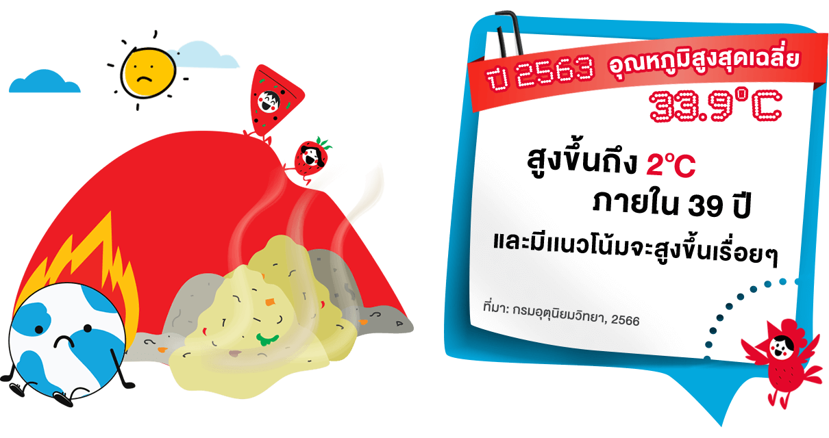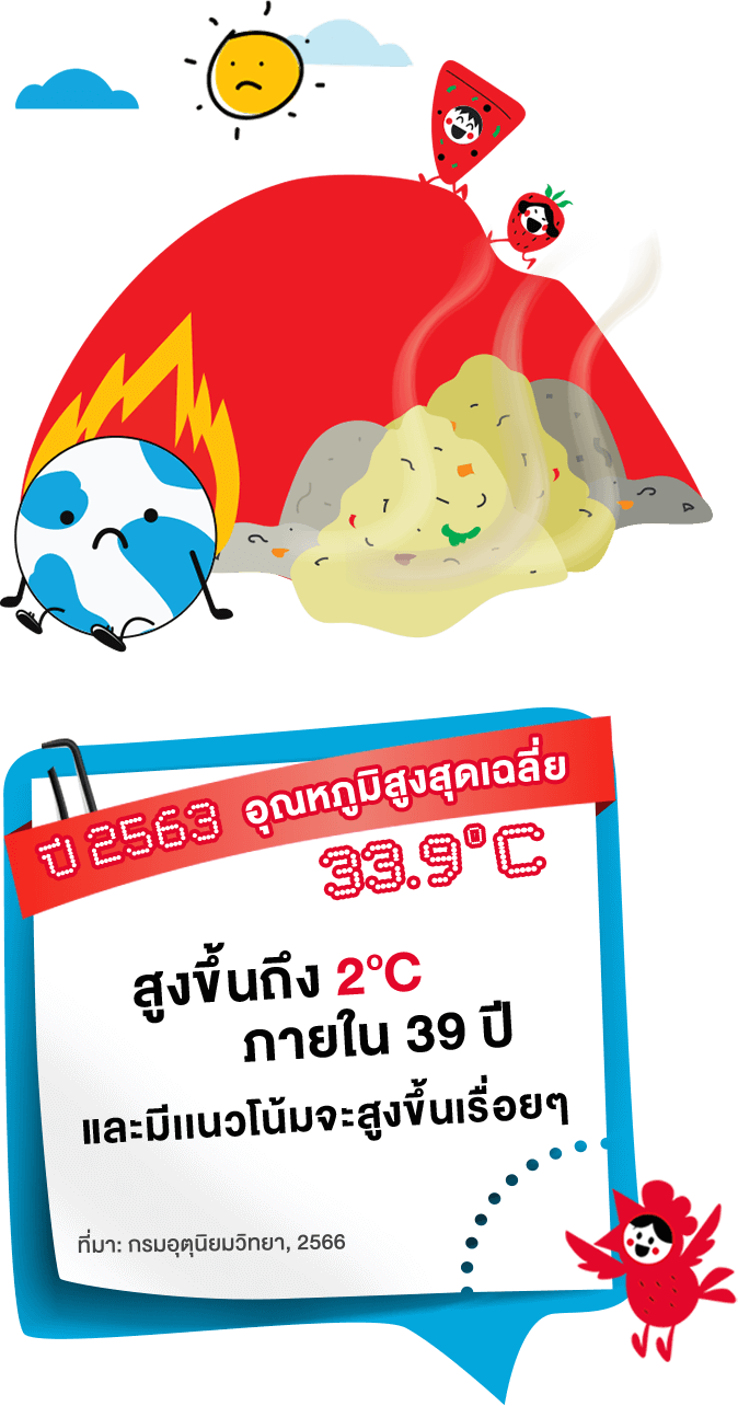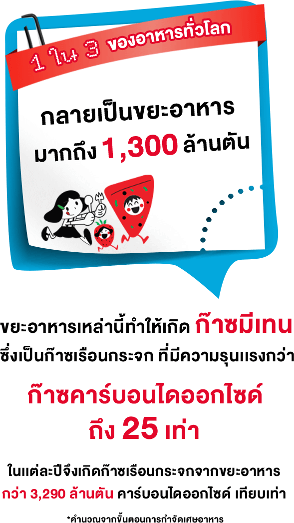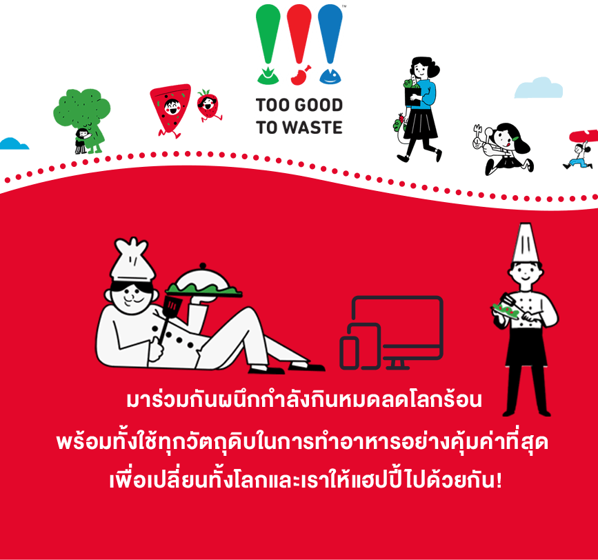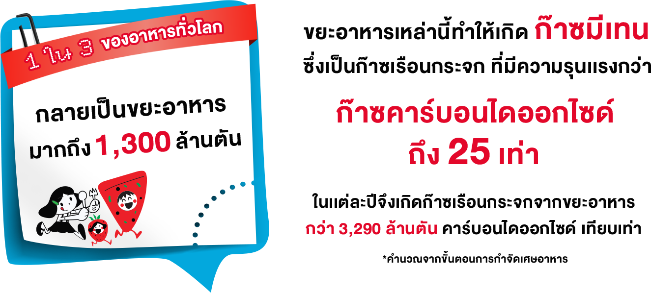 คือ % ก๊าซคาร์บอนไดออกไซด์ที่ลดลงจากใช้ “สูตรอาหารรักษ์โลก” (Too Good To Waste recipe)