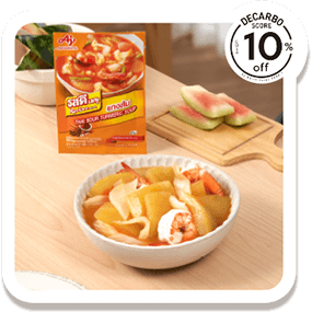 ใช้ข้อมูลจากโปรแกรมสำเร็จรูปที่จัดทำและจัดเก็บข้อมูลโดยบริษัท เอิร์ธ แฮ็คส์ จำกัด ประเทศญี่ปุ่น ในฐานะองค์กรผู้เชี่ยวชาญด้านการคิดคำนวณค่าการปล่อย ก๊าซเรือนกระจก โดยระบบทำการคำนวณค่าร้อยละการลดลงของก๊าซคาร์บอนไดออกไซด์ จากกระบวนการการปรุง และจากวัตถุดิบต่าง ๆ ผ่านระบบของ Sustainable Management Promotion Organization (SuMPO) ซึ่งครอบคลุมทั้งภูมิภาคเอเชีย รวมถึงประเทศไทย